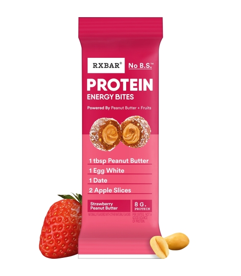 RXBAR Protein Energy Bites Strawberry Peanut Butter are a delicious protein snacking option. With 10g protein*, enjoy an energy boost on the go, powered by peanut butter and fruits to help keep you energized. Made with simple, no artificial ingredients, including peanut butter, egg whites, dates, and apples. These bites offer a combination of protein, carbs, and fats. They’re a good source of fiber (contains 10g total fat per serving). RXBAR Protein Energy Bites Strawberry Peanut Butter are the go-to bite that fits your routine. *11% daily value, not a good source of protein